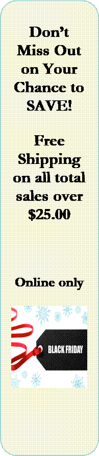 Free shipping on all sales over $25.00 Offer good 11/21/2018 thru 11/26/2018 only